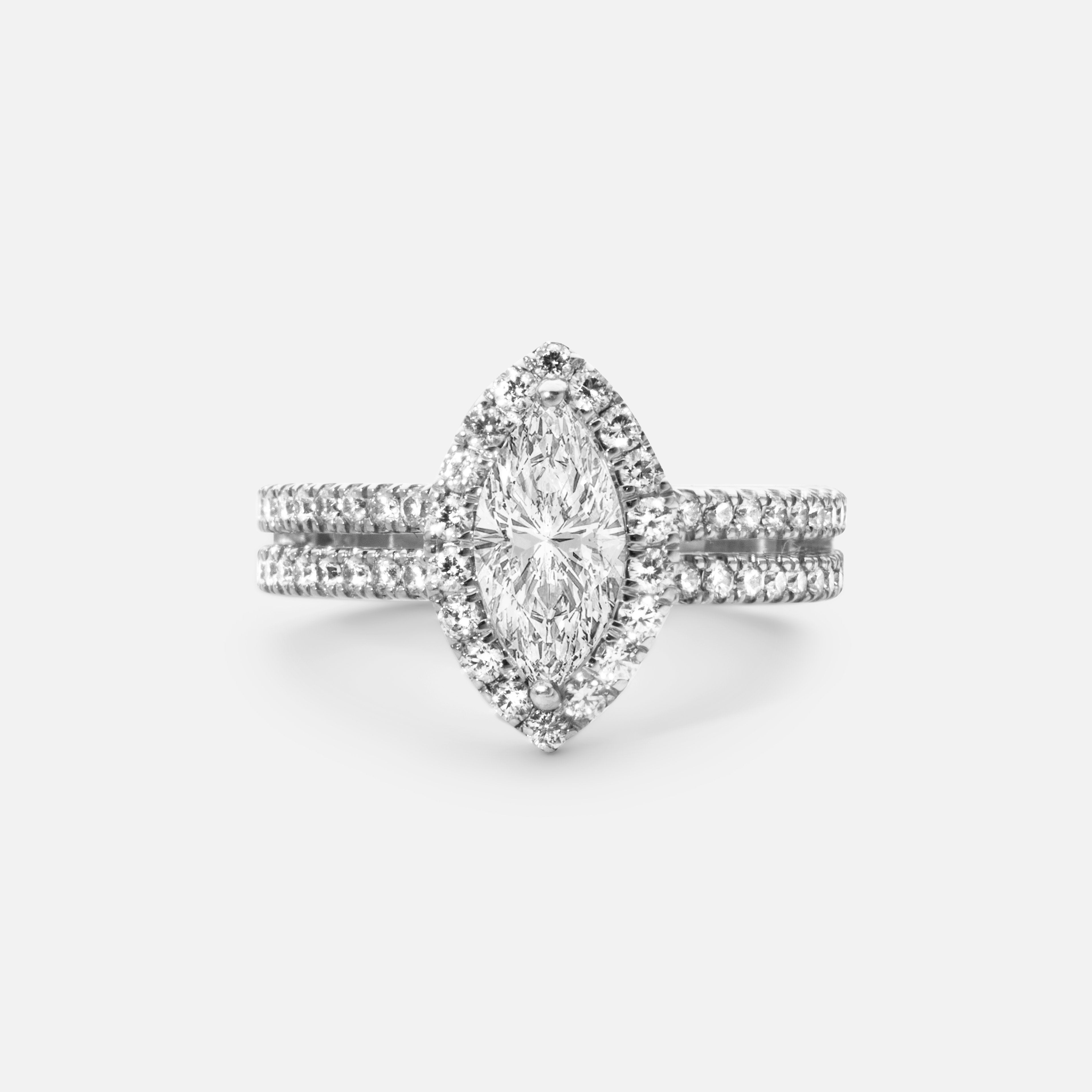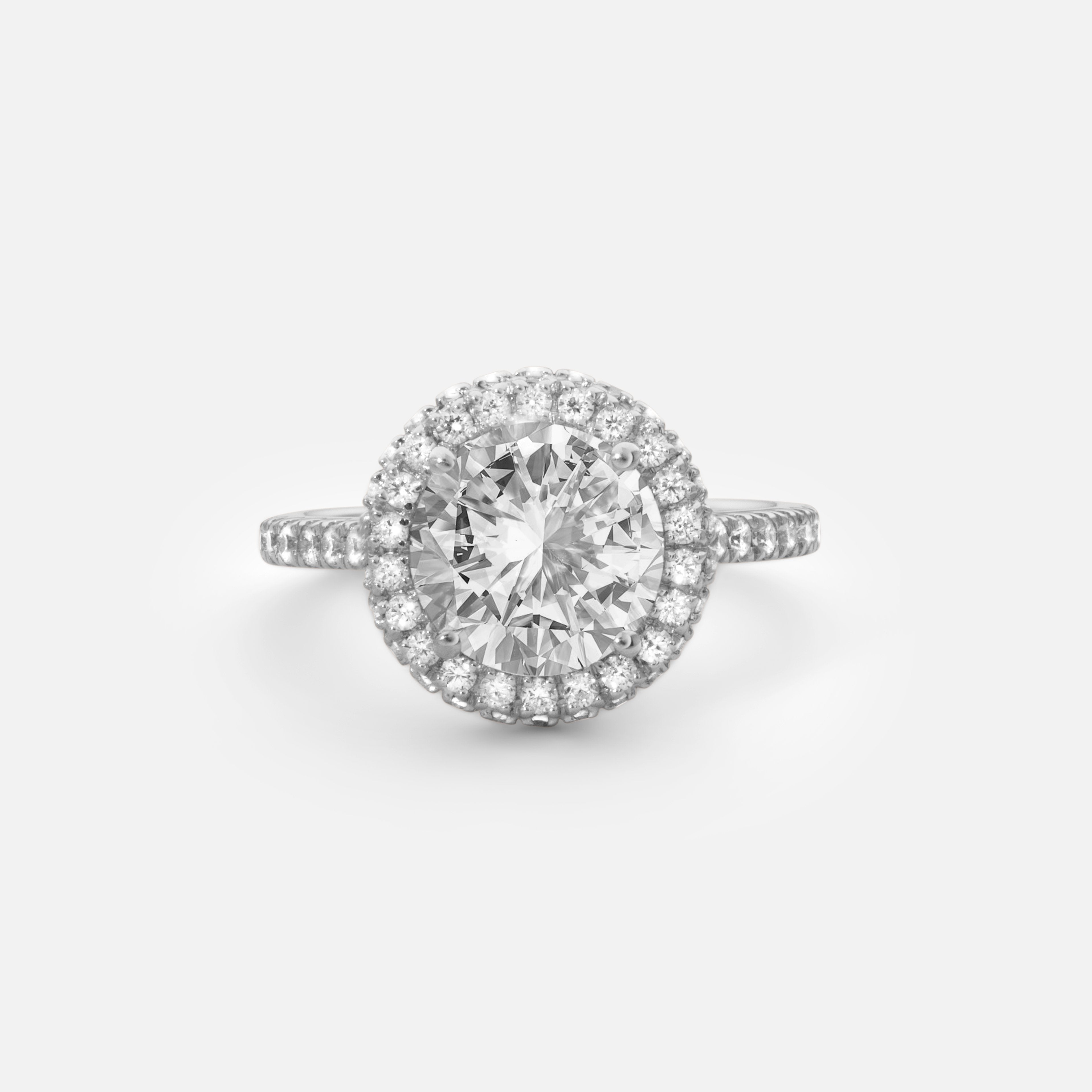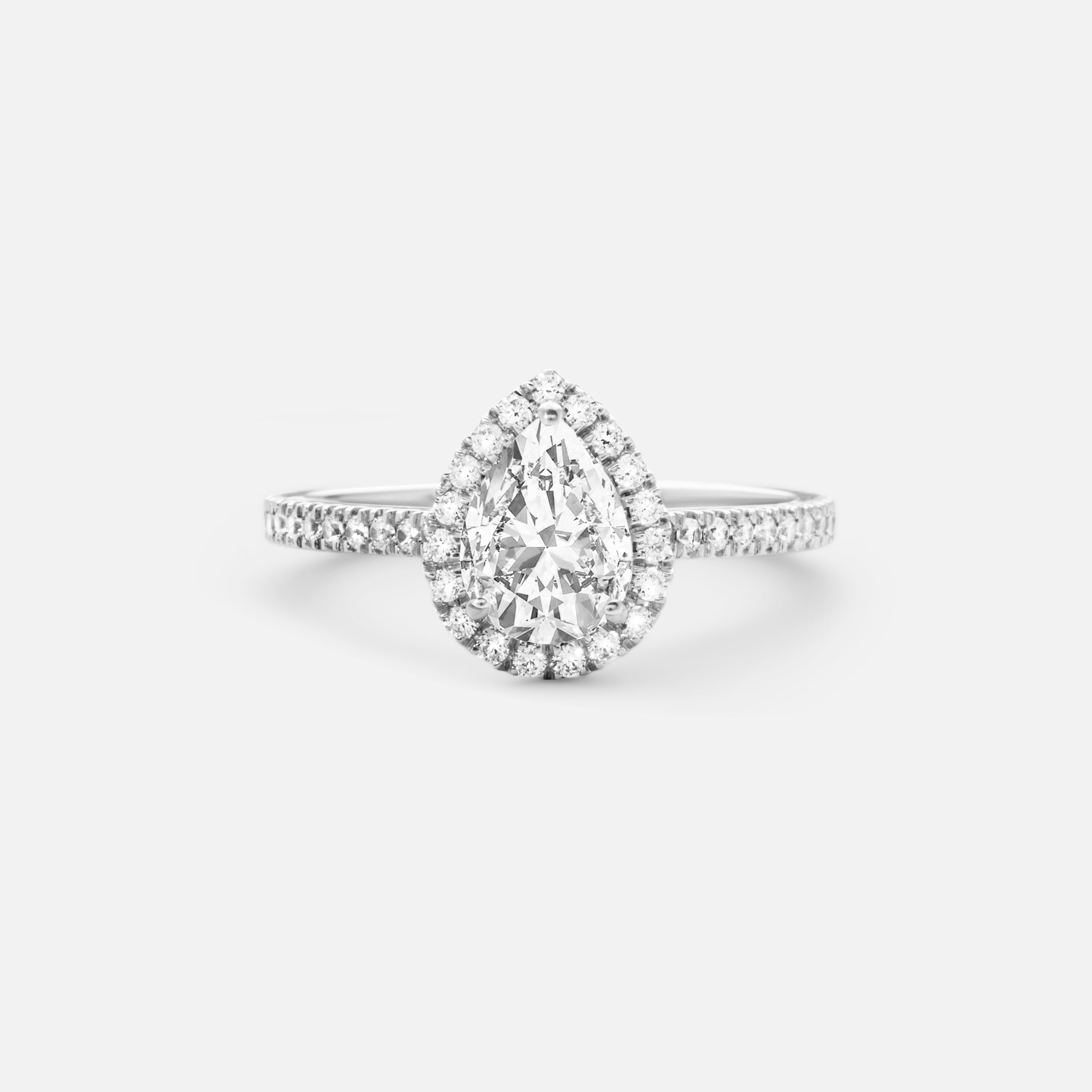 Halo rings are characterized by a halo of diamonds that encircle a center diamond or gemstone. The most classic cut is a brilliant cut diamond, but different shapes of centre diamonds are trending that gives a unique expression.