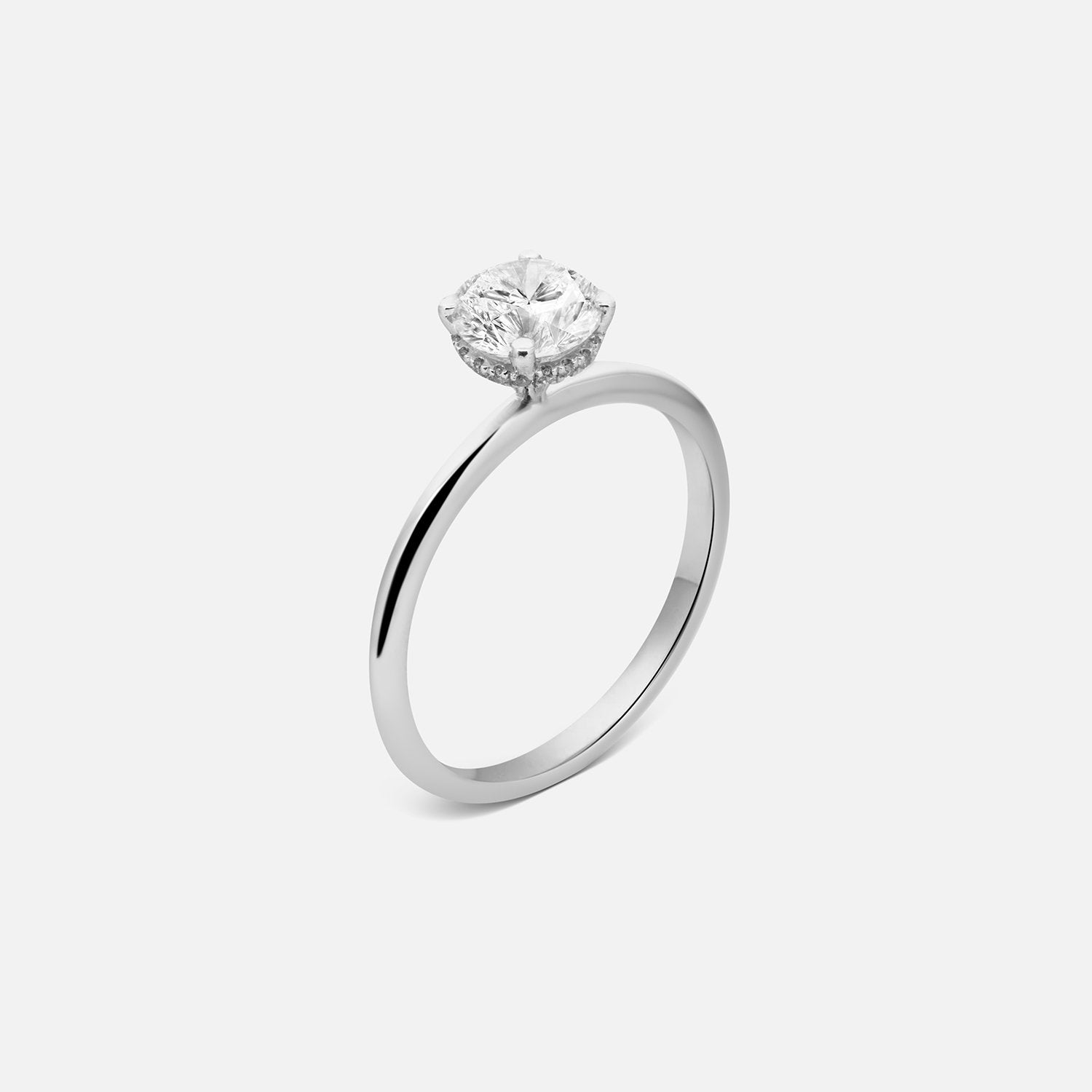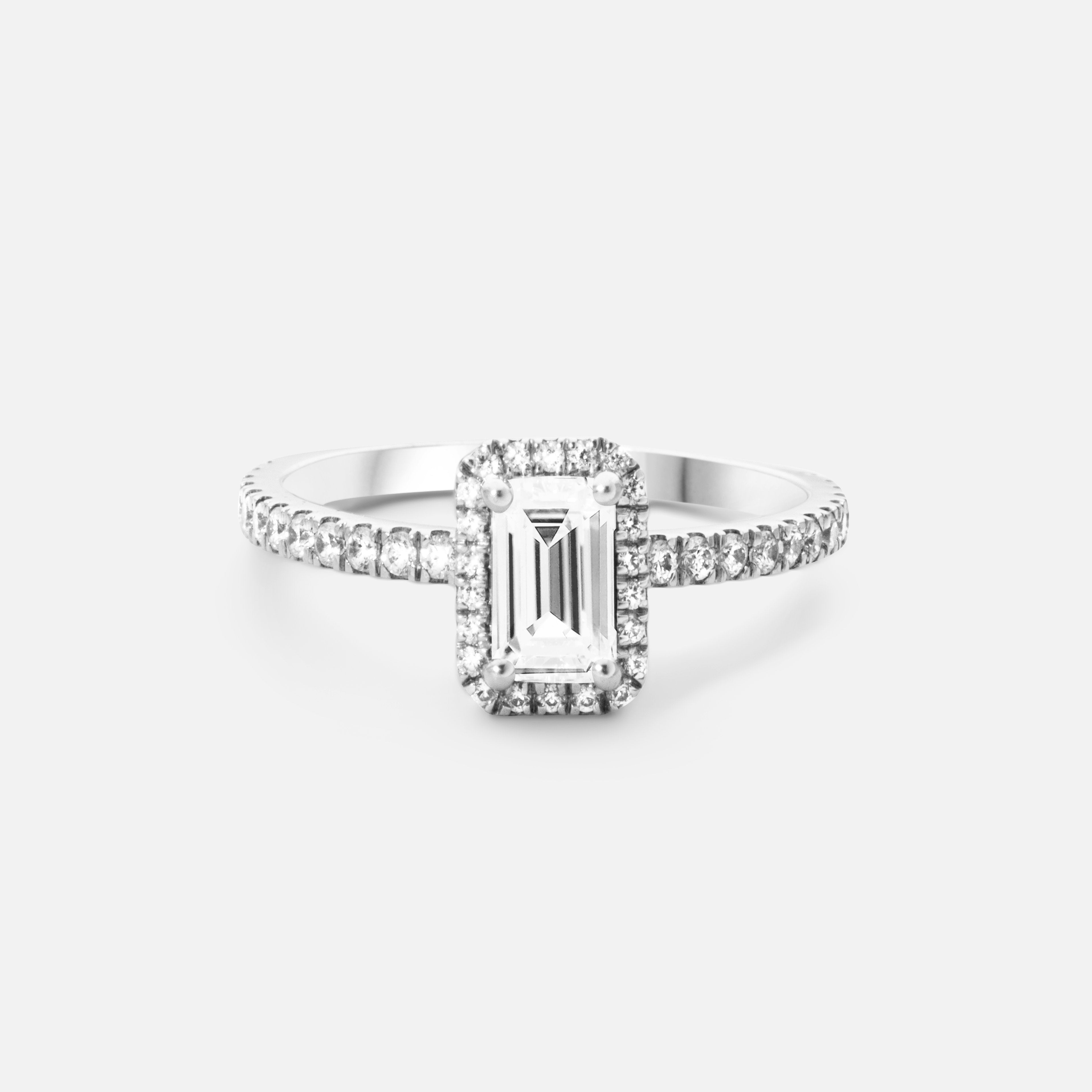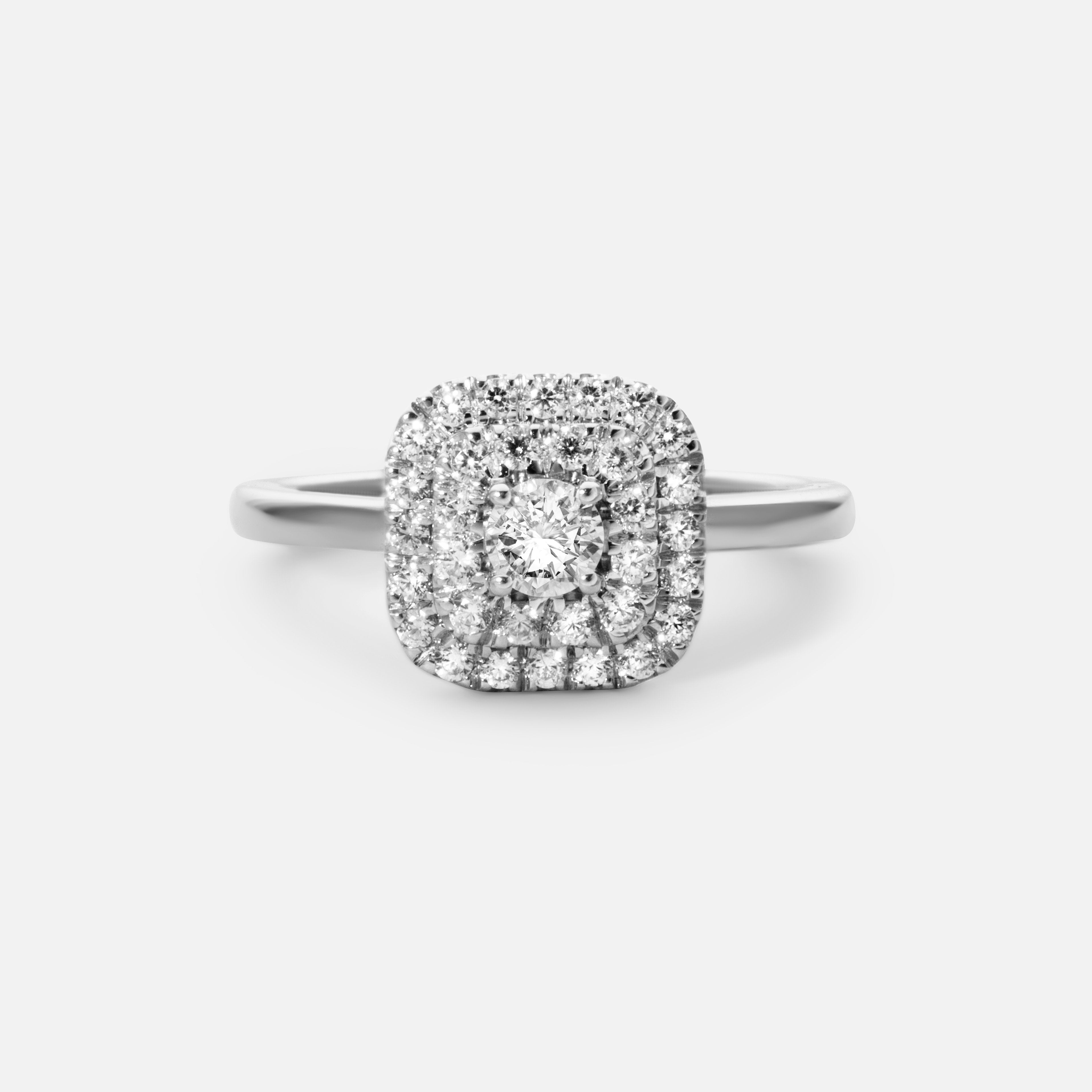Halo rings are characterized by a halo of diamonds that encircle a center diamond or gemstone. The most classic cut is a brilliant cut diamond, but different shapes of centre diamonds are trending that gives a unique expression.